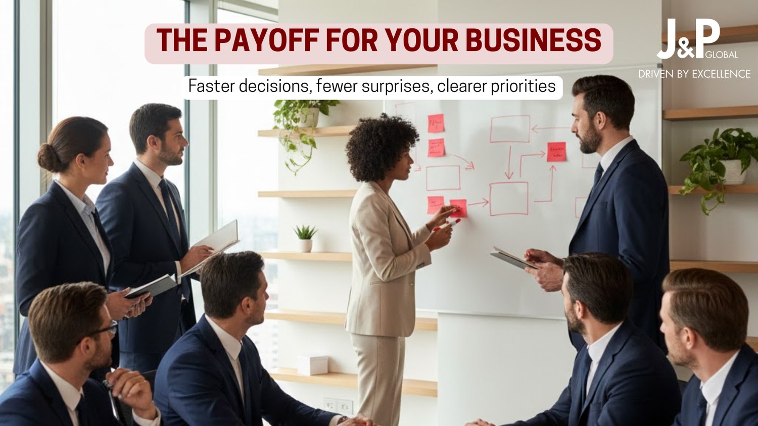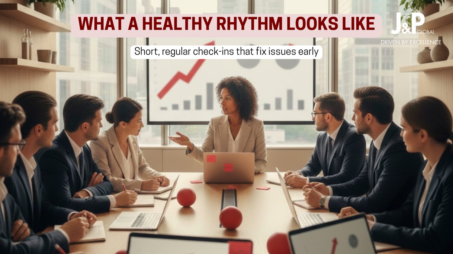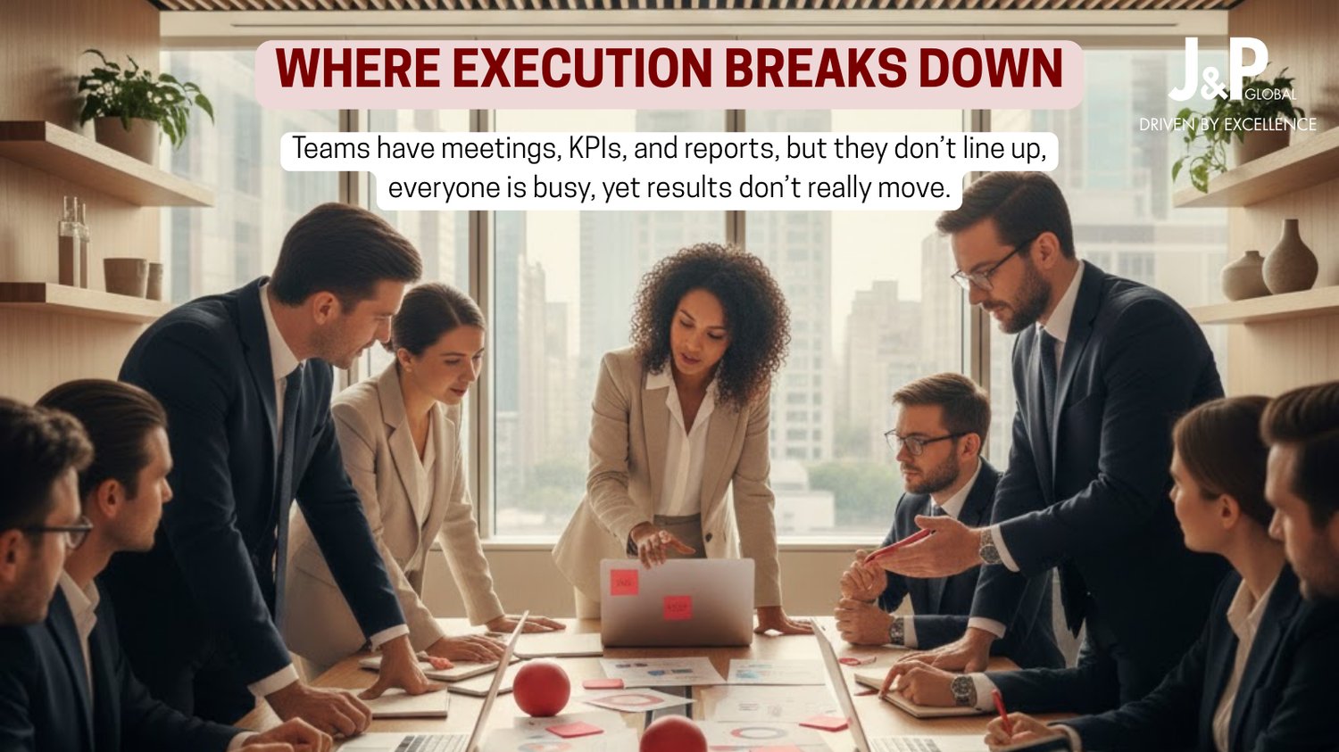 At J&P Global, we see this pattern in organizations of all sizes and sectors. The issue is rarely a lack of ambition or intelligence at the top. The issue is the missing operating rhythm that connects strategy to how work actually flows every day.